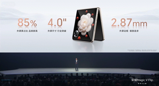 而在“小折叠”这个新战场上,荣耀同样没缺席。2024 年 6 月,荣耀带来了第一代Magic V Flip——一款真正属于年轻人的小折叠。它的4.0英寸大外屏,屏幕素质比肩旗舰,还能全场景互动,直接把“小折叠”做出了旗舰味。