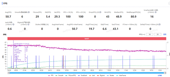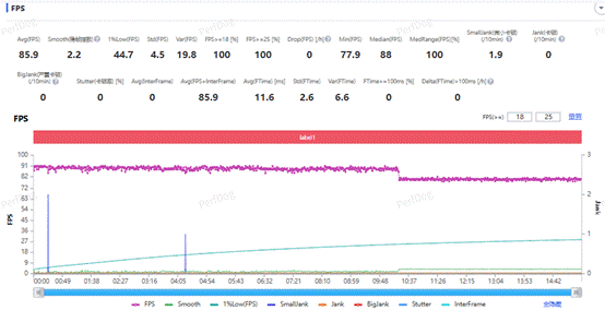 实际测试下来,在极致90帧模式下,15分钟的游戏,手机平均的帧数为85.9帧,在第10分钟左右时,游戏被强制锁定在80帧。