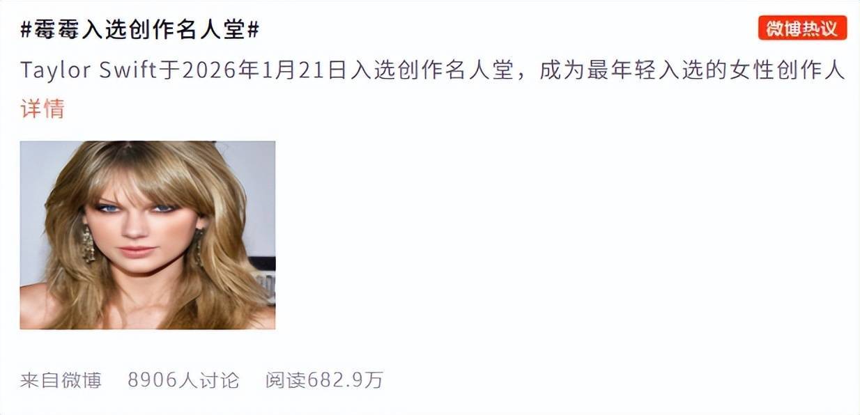 36岁的霉霉,不仅成为该殿堂迄今为止女性入选者中最年轻的一位,更是在出道快满二十年之际,就以最快速度拿下提名并成功入选,书写了乐坛新传奇。