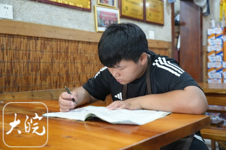 刘宇泽今年14岁,他父母在太和县城细阳路的一个巷口经营着一家板面餐馆。“从放暑假以来,我每天都来餐馆里帮忙。一般是早晨7点多到店里,忙到晚上10点多回家。中间休息的时候,我会抽时间学习,做暑假作业。”刘宇泽说,就是不放假的时候,他也是放学做完作业后就来餐馆帮忙。一年365天,他几乎每天都会到餐馆里帮忙。