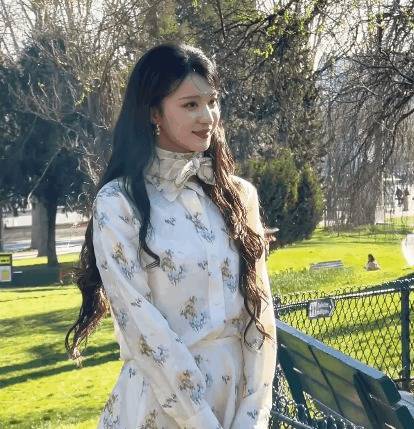白色碎花裙衬得她更加甜美俏皮,在阳光下有一种自然又明媚的感觉,不刻意,不紧绷,松弛感拉满,又有种“老娘最美”的自信,轻松扛住镜头,简直魅力爆棚。